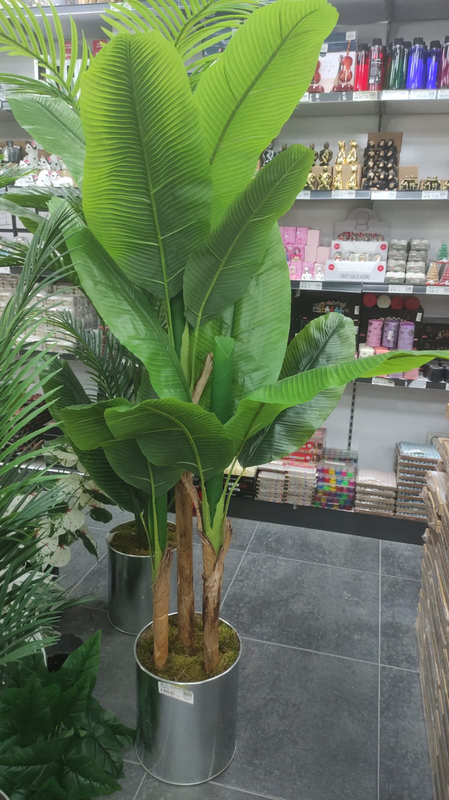 Yapay Muz Ağacı Starliçe Gerçek Dokulu Silinebilir 24 Yaprak Yeşil 210 Cm. Galvaniz Saksı